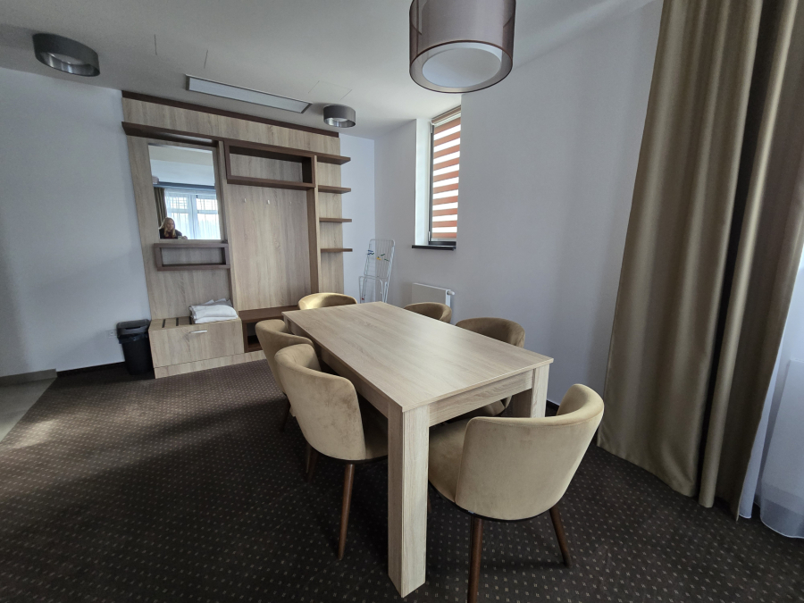 - Obývačka s rozkladacím gaučom, ktorý slúži ako prístelka (matrac s rozlohou: 160 cm x 190cm)