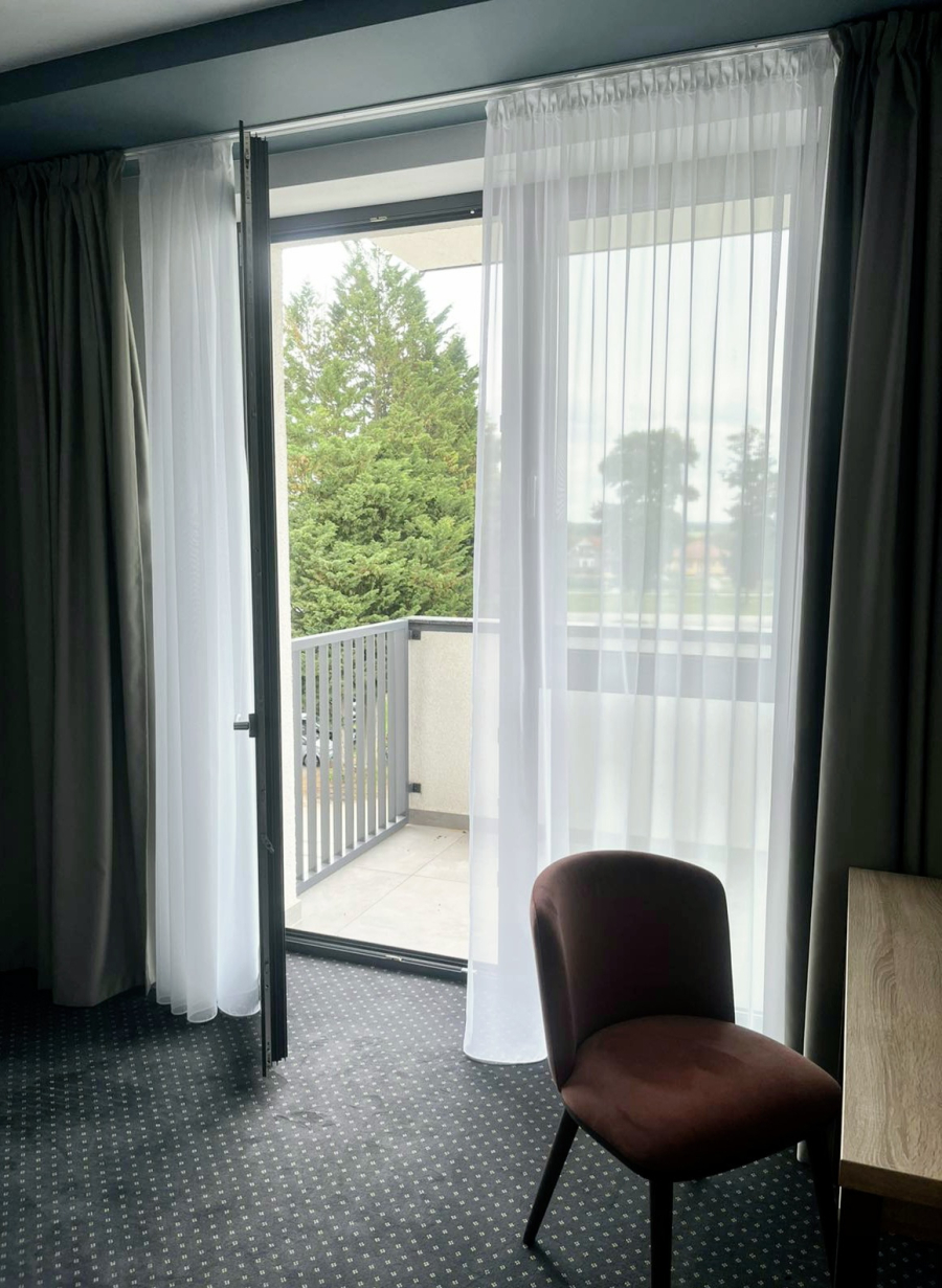 Izba Štandard BALKÓN na 2. alebo 3. poschodí s výťahom ponúka komfortné a moderné ubytovanie. Izba má balkón, manželskú posteľ, trezor, chladničku a klimatizáciu. K dispozícii je aj šatníková skriňa a skrinky, stôl so stoličkou, TV, župany a uteráky. Súčasťou vybavenia je kúpeľňa so sprchou.