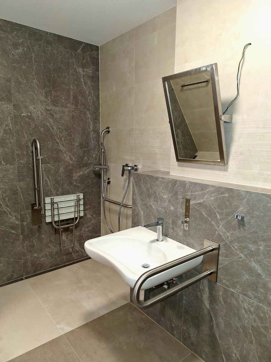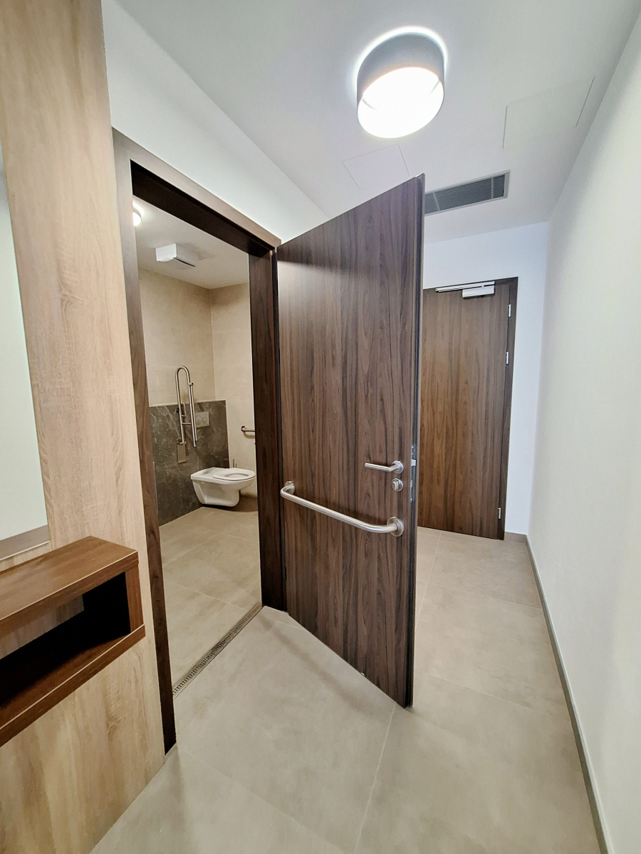 - Bezbariérová kúpeľňa so sprchou a toaletou pre imobilných