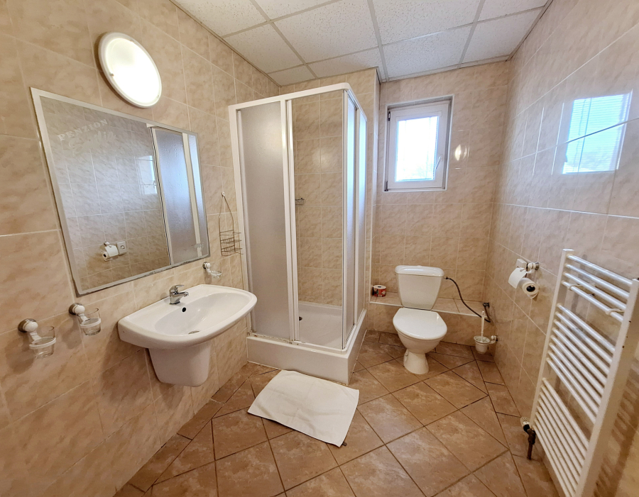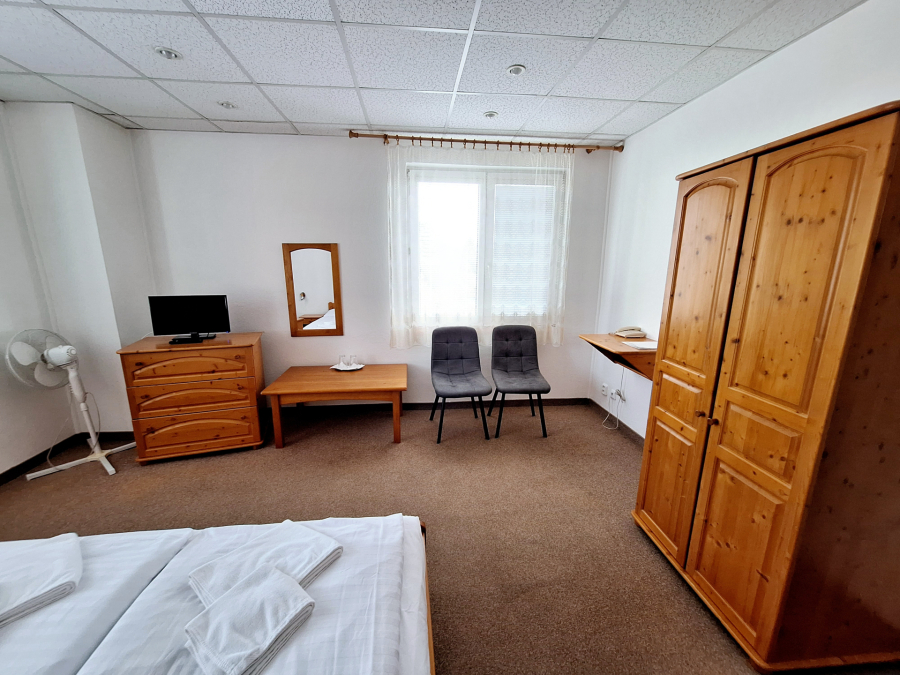 Dvojlôžková izba s manželskou posteľou sa nachádza na prízemí alebo 1. poschodí (bez výťahu). Je vybavená šatníkovou skriňou na uskladnenie vecí, stoličkami a TV pre večerný oddych. Nájdete tu aj sušiak na prádlo a dostatok županov a uterákov pre príjemný pobyt. Kúpeľňa je vybavená sprchovým kútom.